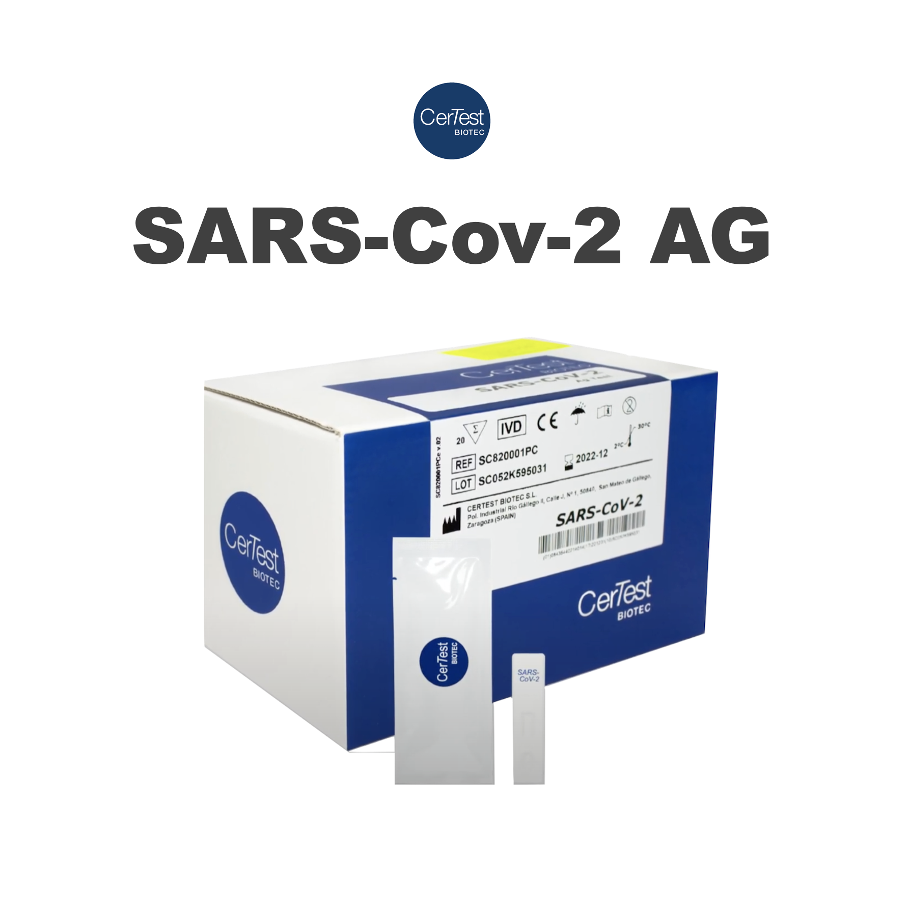 CerTest SARS-CoV-2 card test es una prueba inmunocromatográfica de un solo paso para la detección cualitativa de antígenos de nucleoproteína de SARS-CoV-2 a partir de muestras de hisopos nasofaríngeos procedentes de pacientes sospechosos de infección por COVID-19.